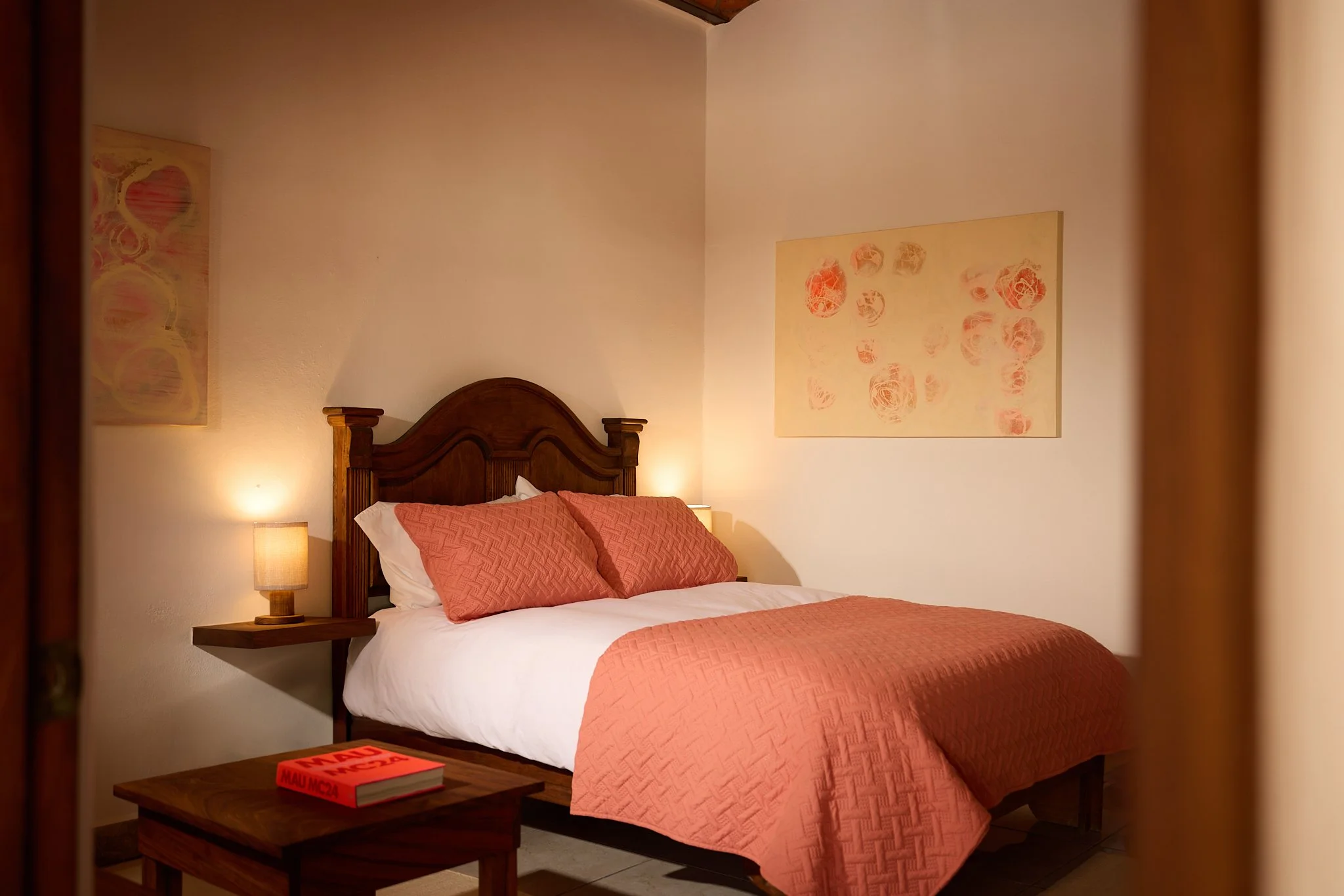 This studio opens directly to the courtyard and saltwater pool, offering a private entrance and its own outdoor lounge area. With queen bed, dyson cooling fan and a small kitchenette, it’s perfect for solo travelers or cozy couples seeking a tranquil setting, steps away from the water. Please note, this unit does not offer air conditioning.